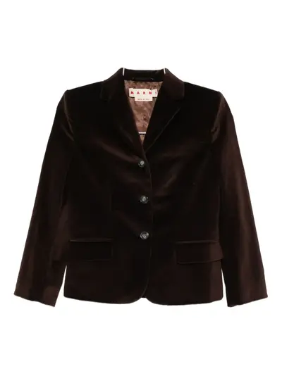 dark brown front button fastening notched lapels front flap pockets long sleeves straight hem