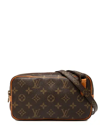 monogram canvas body with vachetta leather trim adjustable flat shoulder strap top zip closure.Brown.Serial Number: 871TH.This item has no inclusions.Condition: GOOD. This previously owned and used item is in good condition with minimal signs of use. This may include fading of material or plating and scratches.Due to the exclusivity of this item and its limited availability processing and delivery might take longer than usual.Please refer to the photos on this product page for a detailed view of the item including any damages declared