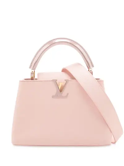 leather body rolled leather handle flat detachable leather strap open top with a flap closure interior zip and slip pockets.Pink.Inclusions: shoulder strap.Condition: EXCELLENT. This previously owned item is in near-perfect condition with no signs of damage or use.Due to the exclusivity of this item and its limited availability processing and delivery might take longer than usual.Please refer to the photos on this product page for a detailed view of the item including any damages declared