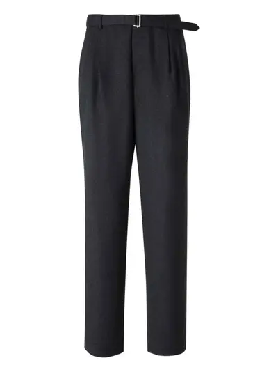 dark grey belt loops buttoned back pocket side pockets zip fastening straight hem