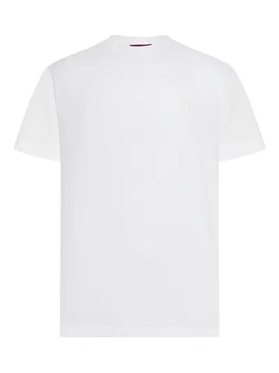 white cotton Interlocking G logo embroidery round neck short sleeves straight hem
