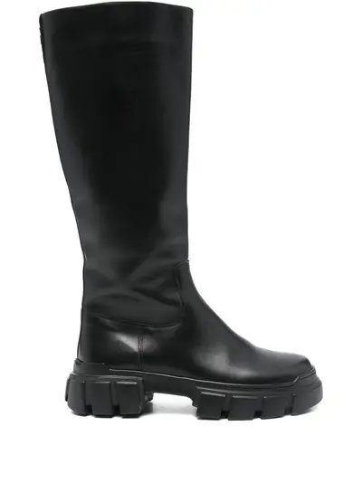 black zip fastening knee-high round toe tonal stitching