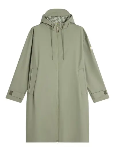 green hooded neck zip fastening long sleeve logo patch welt pockets