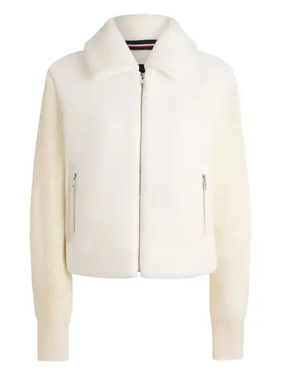 white faux fur finish ribbed sleeves zip fastening side zip pockets