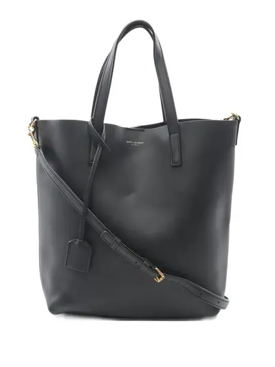 black leather two top handles detachable shoulder strap gold-tone hardware