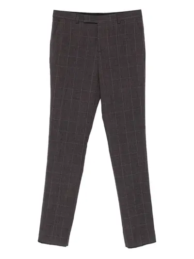 brown checked pattern belt loops rear welt pockets concealed front fastening