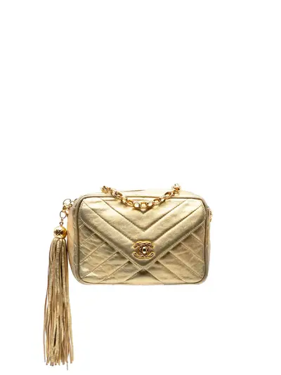 quilted lambskin leather body chain link shoulder strap top zip closure front flap with double Cs twist lock closure interior zip and slip pockets.Gold.Serial Number: 2558872.Inclusions: dust bag.Condition: GOOD. This previously owned and used item is in good condition with minimal signs of use. This may include fading of material or plating and scratches.Declared Damages: Exterior Back Feature(s) Moderate Wear.Please refer to the photos on this product page for a detailed view of the item including any damages declared