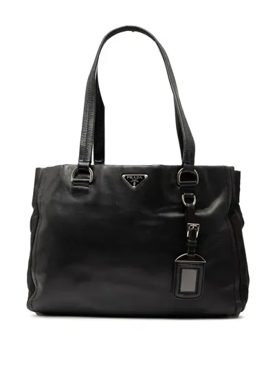 This tote bag features a nappa leather body with nylon trim, flat leather shoulder straps, an open top, an interior zip compartment, and an interior zip pocket. Black. Inclusions: authenticity card, name tag. Condition: GOOD. This previously owned and used item is in good condition with minimal signs of use. This may include fading of material or plating and scratches. Due to the exclusivity of this item and its limited availability, processing and delivery might take longer than usual. Declared Damages: Exterior Top Feature(s) Moderate Wear. Exterior Bottom Feature(s) Moderate Scratches. Handle/Strap Feature(s) Moderate Wear. Please refer to the photos on this product page for a detailed view of the item, including any damages declared.
