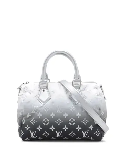 monogram nylon body rolled leather handles adjustable and detachable leather strap top zip closure interior zip pocket.Gray.Inclusions: dust bag charm shoulder strap.Condition: EXCELLENT. This previously owned item is in near-perfect condition with no signs of damage or use.Due to the exclusivity of this item and its limited availability processing and delivery might take longer than usual.Please refer to the photos on this product page for a detailed view of the item including any damages declared