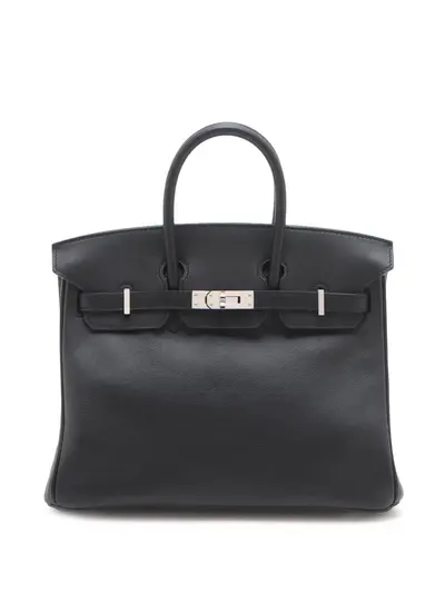 The Birkin 25 features a swift leather body, rolled leather handles, a front flap with turn-lock closure, and interior zip and slip pockets. Black. Inclusions: padlock, key, charm. Condition: EXCELLENT. This previously owned item is in near-perfect condition with no signs of damage or use. Due to the exclusivity of this item and its limited availability, processing and delivery might take longer than usual. Please refer to the photos on this product page for a detailed view of the item, including any damages declared.