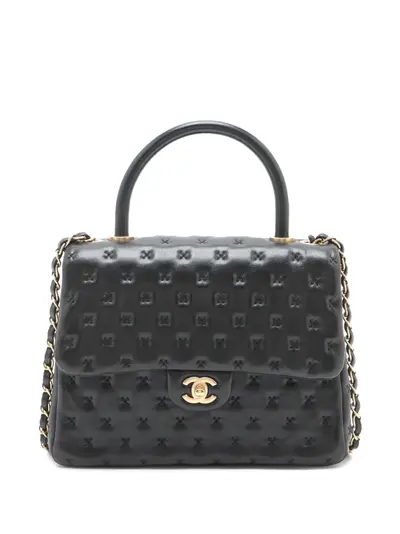 lambskin leather body rolled leather top handle leather woven chain strap front flap with twist lock closure exterior back slip pocket interior zip and slip pockets.Black.Serial Number: 23248012.Inclusions: authenticity card.Condition: GOOD. This previously owned and used item is in good condition with minimal signs of use. This may include fading of material or plating and scratches.Due to the exclusivity of this item and its limited availability processing and delivery might take longer than usual.Please refer to the photos on this product page for a detailed view of the item including any damages declared