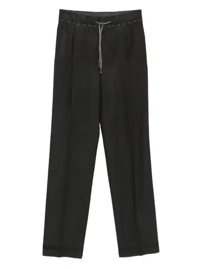 brown drawstring waist concealed front button, hook and zip fastening pleat detailing two rear welt pockets