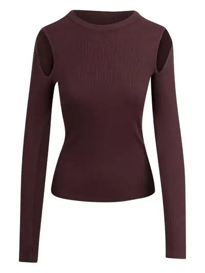 dark brown cut-out shoulder detail crew neck