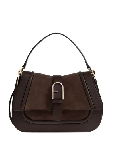 espresso brown panelled design top handle detachable shoulder strap gold-tone hardware internal slip pocket