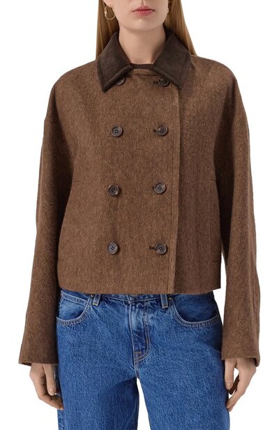 Полупальто из шерсти и льна Juun.J jw5x30w52 (коричневый, lpn31100139)