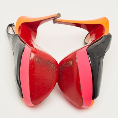Christian Louboutin Multicolor Patent Leather Private Number Slingback Sandals Size 36.5 1235781 (lpn31100416)