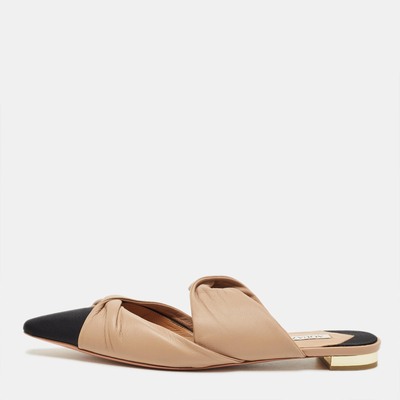 Aquazzura Beige/Black Canvas and Leather Twist Flat Mules Size 39 1235760 (бежевый, lpn31100421)