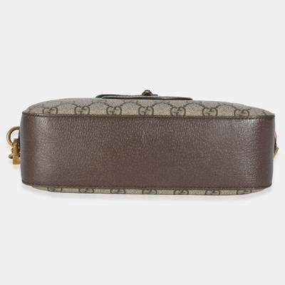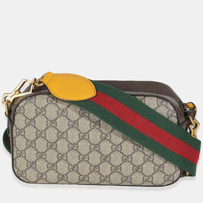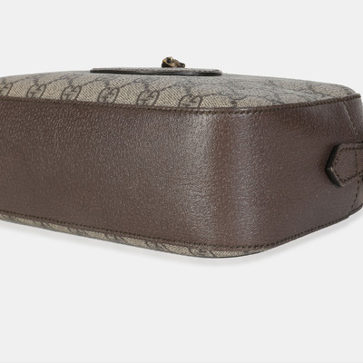 Crafted in beige GG Supreme canvas, the Gucci Neo Vintage Shoulder Bag features brown leather trim, the signature web stripe, and the classic oval Gucci logo patch. The zip top design includes an adjustable canvas strap for crossbody wear.