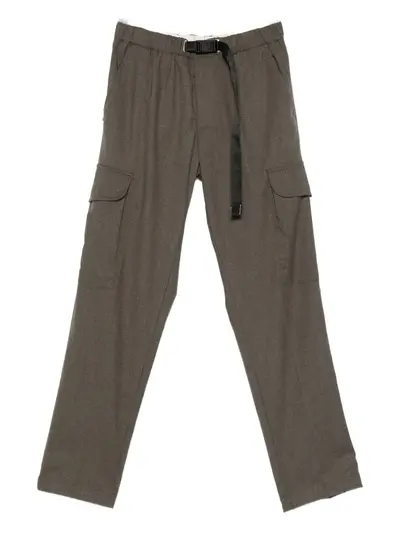 brown belted waist elasticated waistband side flap pockets rear welt pocket straight leg