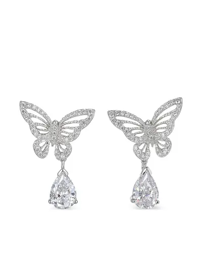 silver-tone 14kt white gold/rhodium vermeil polished finish dangle design butterfly motif pavé-set and prong-set laboratory-grown white diamonds totalling 8.1ct post-back fastening These earrings come as a pair. Normal everyday use and external agents may reduce the lustre of gemstones and gold surfaces. To maintain, use specific, non-abrasive products specially meant for cleaning jewellery.