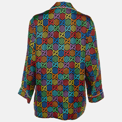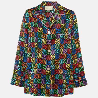 Gucci turns a silk shirt into a vibrant display of swirling GG motifs in psychedelic colors. Lightweight and airy, it drapes comfortably, offering ease without compromising style.