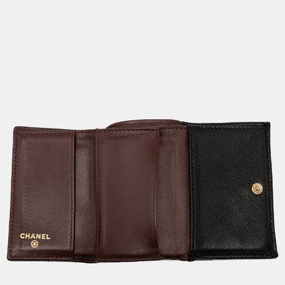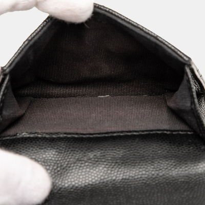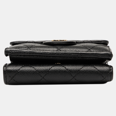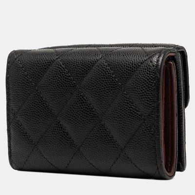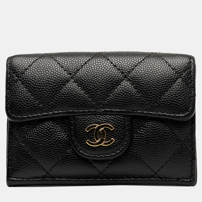 The authentic Chanel Black CC Quilted Caviar Flap Card Holder Wallet is a compact yet luxurious accessory that combines elegance with practicality. This designer pre owned Chanel wallet features black caviar leather with signature quilting and the iconic CC logo, offering a sleek solution for essentials. A pre loved Chanel Flap Card Holder Wallet, it embodies timeless craftsmanship and refined Chanel style.