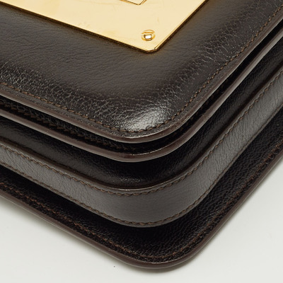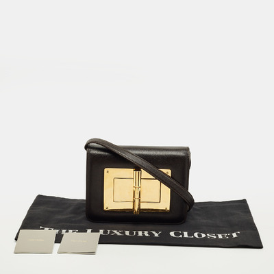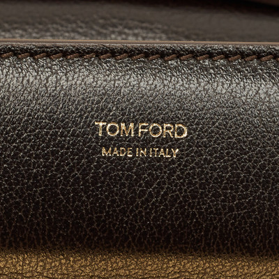 The Tom Ford Natalia sits neatly at your side, holding only the essentials. Dark brown leather forms the structured frame, while an oversized metal clasp hints at the signature flair. The slim strap keeps it steady whether you’re moving through city streets or evenings that stretch on.