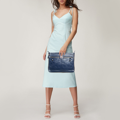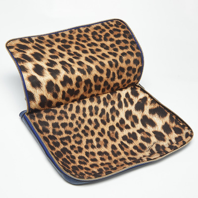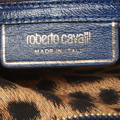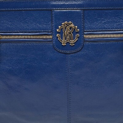 Blue leather gives this Roberto Cavalli clutch a clean, structured look. The RC logo adds a mark of the brand, while the zip around design keeps everything neatly enclosed.