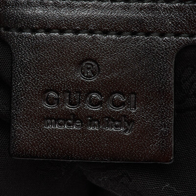 Crafted from Gucci’s signature GG monogram canvas with smooth leather trim, this hobo carries a nod to the brand’s heritage. The top zip opens to a spacious interior, while the single handle is finished with interlocking GG accents that mark its unmistakable origin.