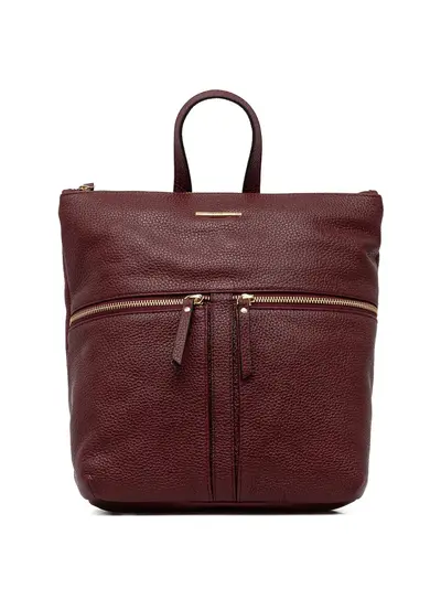 burgundy top handle adjustable shoulder straps zip fastening gold-tone hardware front zip pocket