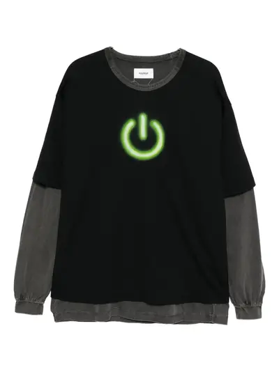 smoke grey ribbed cuffs reversible layered design graphic print to the front crew neck