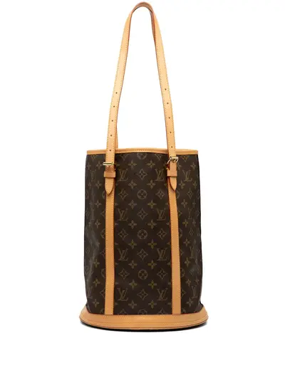 monogram canvas body with vachetta leather trim flat vachetta leather straps open top interior zip and slip pockets brown Serial Number: FL0051 This item has no inclusions. Condition: GOOD. This previously owned and used item is in good condition with minimal signs of use. This may include fading of material or plating and scratches. Please refer to the photos on this product page for a detailed view of the item, including any damages declared.