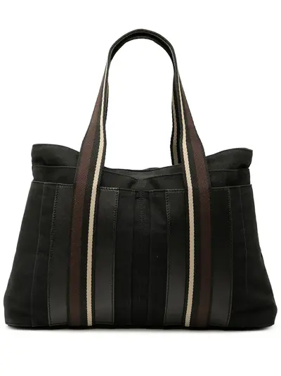 The Sac Troca Horizontal features a canvas body with leather panels, flat handles, a top clasp closure, and an interior zip pocket. Black. This item has no inclusions. Condition: GOOD. This previously owned and used item is in good condition with minimal signs of use. This may include fading of material or plating and scratches. Please refer to the photos on this product page for a detailed view of the item, including any damages declared.