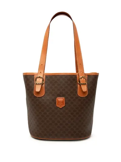 This tote bag features a coated canvas body with leather trim, adjustable flat leather shoulder straps, an open top, and an interior zip compartment. Brown. Serial Number: MC98/1. This item has no inclusions. Condition: GOOD. This previously owned and used item is in good condition with minimal signs of use. This may include fading of material or plating and scratches. Please refer to the photos on this product page for a detailed view of the item, including any damages declared.