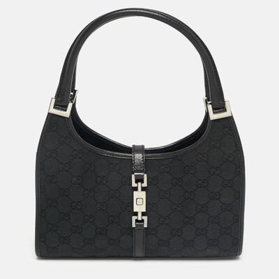 An ode to vintage allure, this Gucci Jackie Bardot bag in GG canvas and black leather carries that easy, retro charm the silhouette is known for. The signature piston clasp and curved shape feel relaxed yet distinctly elegant—a true wardrobe classic.