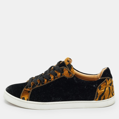 Christian Louboutin Black/Gold Leopard Print Velvet Lace Up Sneakers Size 37 1233062 (чёрный, lpn31105191)