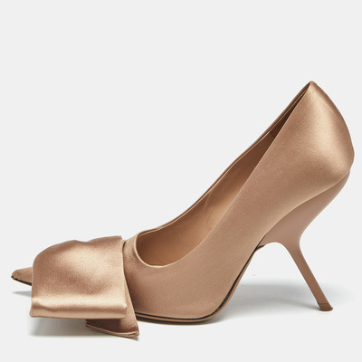 Sunlight dances over the gold satin of Salvatore Ferragamo’s Erica pumps, where exaggerated bow details adorn the front. The pointed toe and slanting heel carry each step with grace.