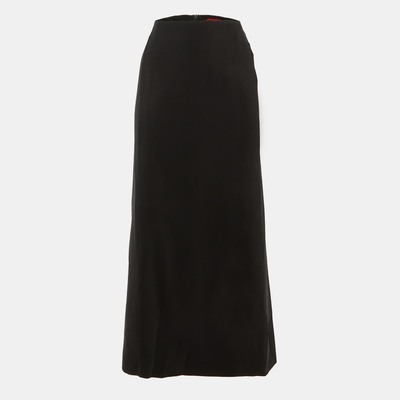 Minimalist yet chic, this Kenzo black crepe maxi skirt exudes effortless sophistication. The clean lines and fluid drape create a refined silhouette perfect for day to night styling. Crafted from lightweight crepe, it moves gracefully with every step. A timeless wardrobe essential that blends comfort with modern luxury.
