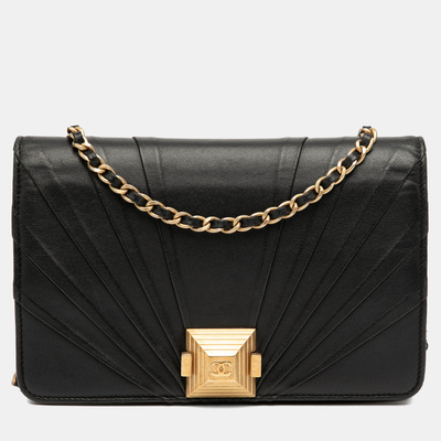 Chanel Black Lambskin Pyramid Wallet On Chain 1240833 (чёрный, lpn31111303)