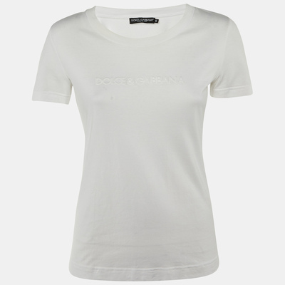 A wardrobe essential with subtle detail, this Dolce and Gabbana t shirt for women features a tonal embossed logo across the chest. The soft cotton and minimal aesthetic make it an easy choice for polished everyday wear.