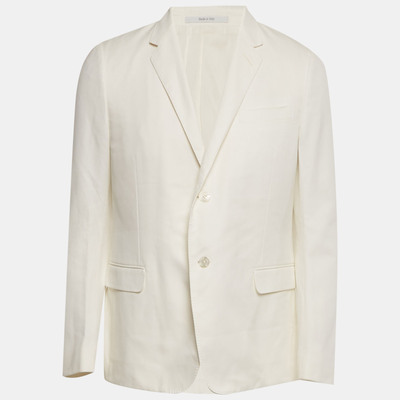 Gucci’s regular fit suit is tailored from white textured cotton. The structured blazer and matching trousers create a sharp, clean lined silhouette that exemplifies refined tailoring.