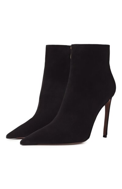 Ботильоны Devotion с зауженным мысом, на высокой изогнутой шпильке выполнили из замши. Модель застегивается боковой молнией с пуллером, вторящем накладке в форме сердца на подошве.