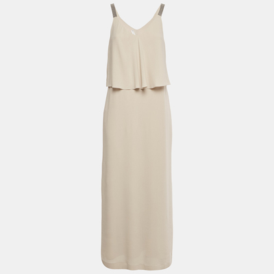 Elegantly crafted from fluid silk, this Brunello Cucinelli dress embodies understated sophistication. The subtle beige hue and delicate embellished trim elevate its timeless charm. Perfect for refined evening affairs or effortless resort dressing.