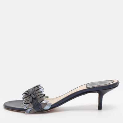 Dior Metallic Blue Leather Cut Out Flat Slide Sandals Size 37 1241128 (lpn31114563)