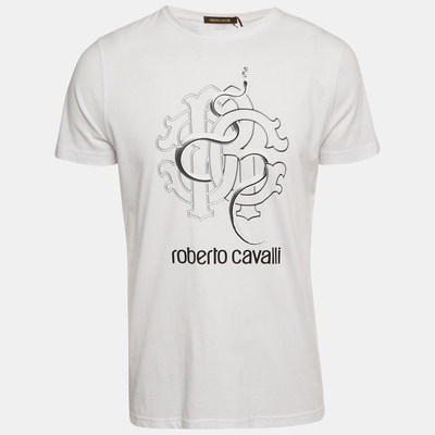 A true Cavalli statement, this white jersey t shirt features the brand’s signature flair — a bold snake winding around the RC logo across the chest. Soft, easy, and instantly striking, it brings that touch of wild energy to even the simplest outfit.