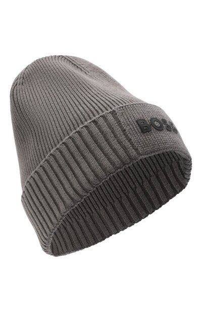 Шапку бини Asic связали узором в рубчик из хлопковой пряжи с добавлением шерсти первого пострига. На широком отвороте модель декорировали прорезиненным логотипом марки.