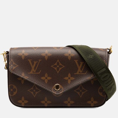 This Louis Vuitton piece is a Strap And Go variation of the Felicie, rendered in the classic brown Monogram canvas. It is a functional accessory designed for versatile, hands free carry, utilizing its signature canvas material for iconic daily use.