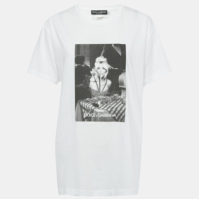 Bold and expressive, this Dolce and Gabbana x Kim T shirt captures the collaboration’s playful yet fashion forward spirit. Crafted from soft white jersey, it features striking graphic prints on the front that add a statement edge. Perfect for casual styling, it blends everyday comfort with signature Italian flair.