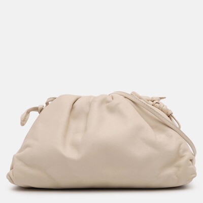 The Bottega Veneta The Mini Pouch Crossbody in white lambskin leather is the epitome of modern minimalism and quiet luxury. Crafted from buttery soft leather, its gathered silhouette captures the house’s signature sense of effortless sophistication.