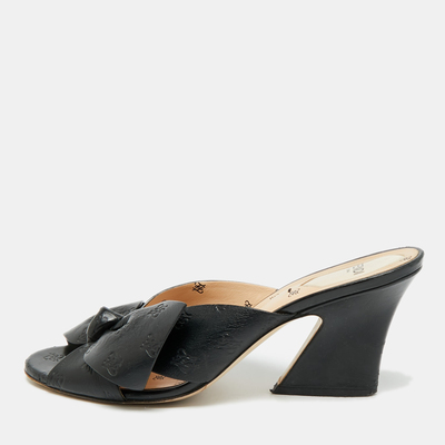 Black leather shaped into a front bow, marked with the Karligraphy monogram. These are the sandals you slip on with wide leg trousers or a cotton day dress when you want to feel put together without much effort.